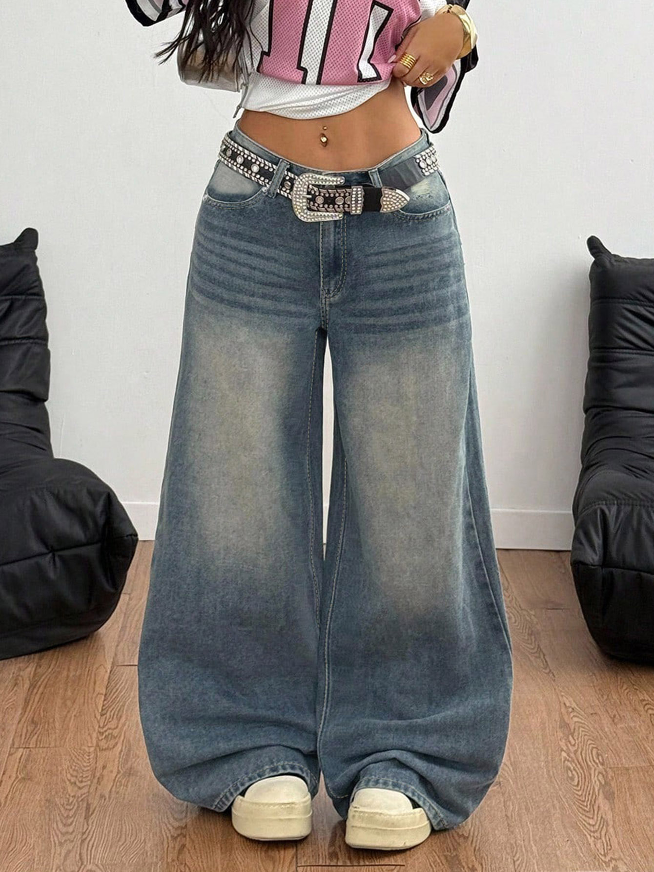 Style: Straight-leg, wide-leg, low to mid-rise waist